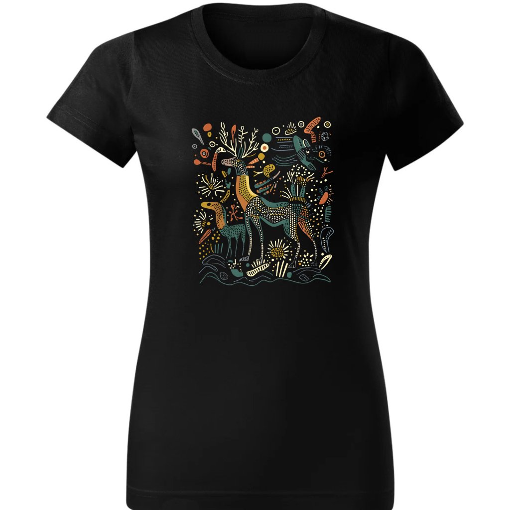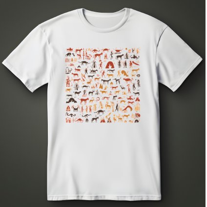 Dotek pradávného umění v moderní duši. Tento motiv čerpá z jeskynních maleb a etnické symboliky – jako kdyby tvé tričko neslo otisk tisíců let. Nos...