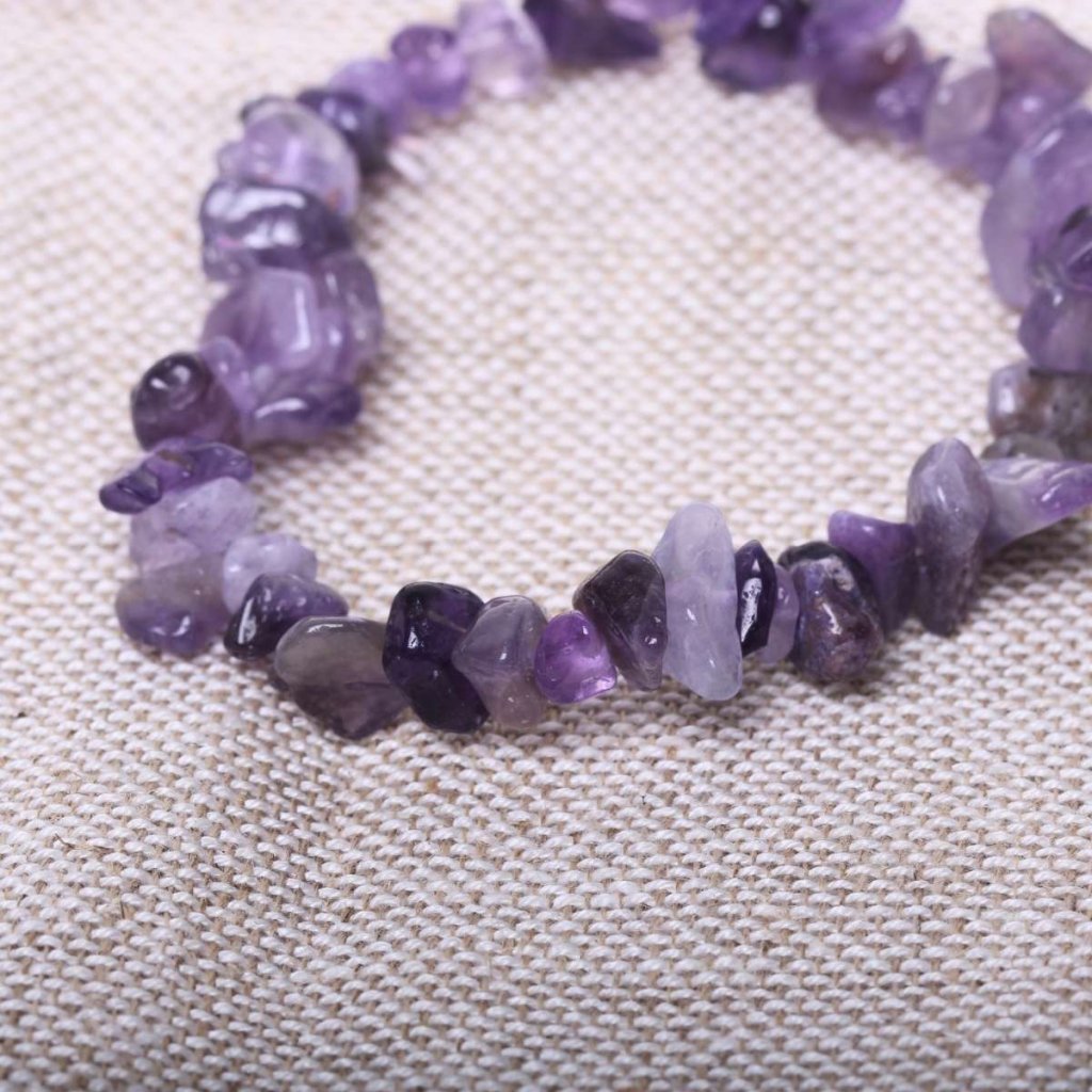 Ametyst je oblíbený kámen pro meditaci, očistu mysli a harmonizaci energie. Pomáhá utišit neklidné myšlenky, zmírnit stres a napojit se na vlastní vnitřní kompas. Zároveň působí jako ochranný štít proti toxickým emocím a neklidu z okolí. Navlečený je na pevném elastickém vláknu, které zajišťuje komfort při nošení.