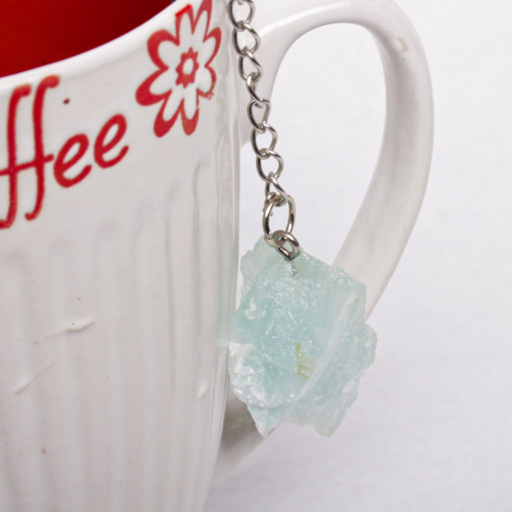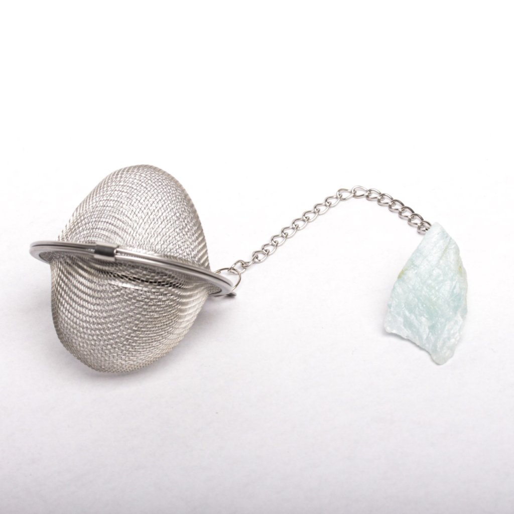 Raw Crystal Tea Strainer – Aquamarine přináší neobyčejné spojení funkčního doplňku a jemné energie krystalů. Akvamarín je od pradávna vnímán jako kámen odvahy, pravdy a klidné moudrosti. V tomto jedinečném infuzéru se stává tichým průvodcem každodenních rituálů a chvílí zastavení.