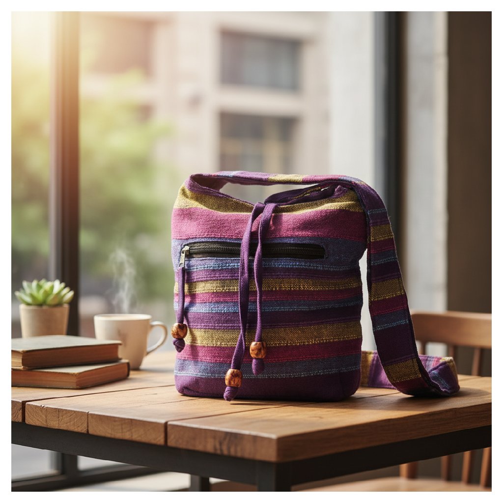 Divoké Květiny – Etno Nepálská Taška kombinuje tradiční nepálský etnický design s moderní praktičností. Vnitřní a vnější kapsy umožňují snadné uspořádání osobních věcí, zatímco široký popruh na rameno zajišťuje pohodlné nošení po celý den.