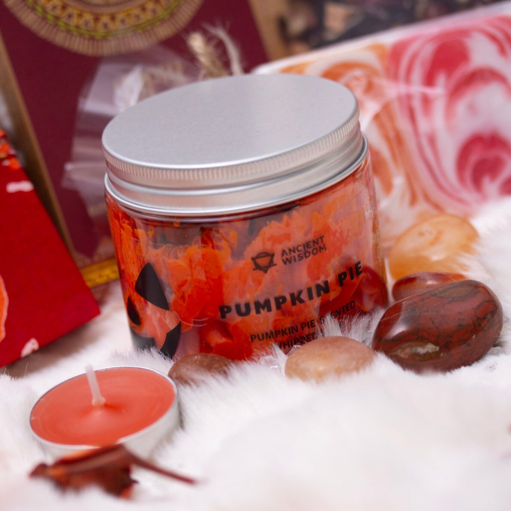 Součástí krabičky je i čajová svíčka v oranžové barvě – symbol tepla a vitality – a Zápisník na sny v červené barvě, do kterého můžete zachytit své myšlenky, nápady či sny. Přírodní ručně vyráběné mýdlo s vůní grapefruitu osvěžuje tělo i mysl, zatímco šlehané dýňové mýdlo zanechává pokožku jemnou a vyživenou.