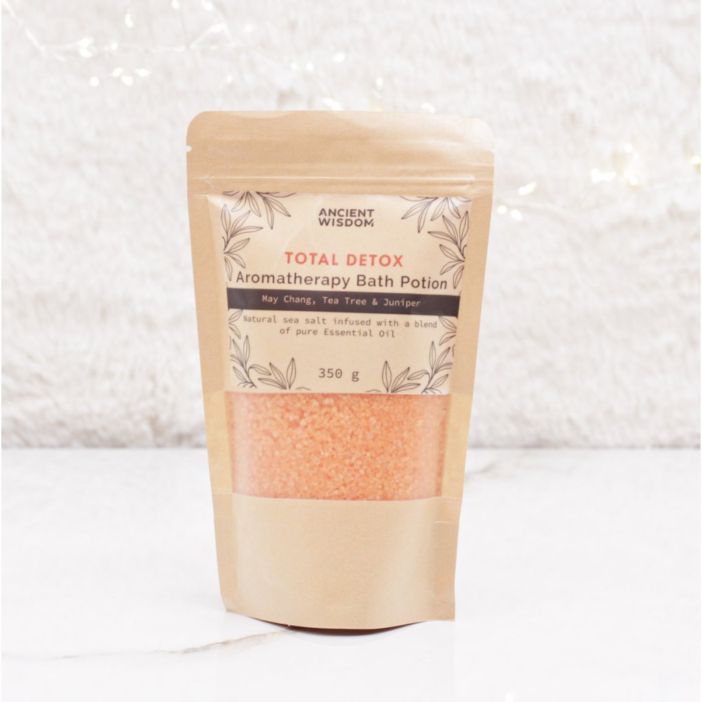 Obnovte svou rovnováhu s koupelovou solí Total Detox. Tato silná směs mořské soli a čistých esenciálních olejů byla vytvořena pro hluboké uvolnění a očistu těla i mysli. Esenciální oleje z tea tree, litsey cubeby a jalovce mají výrazné detoxikační a osvěžující účinky, které podpoří vaše tělo i ducha během regenerační koupele.