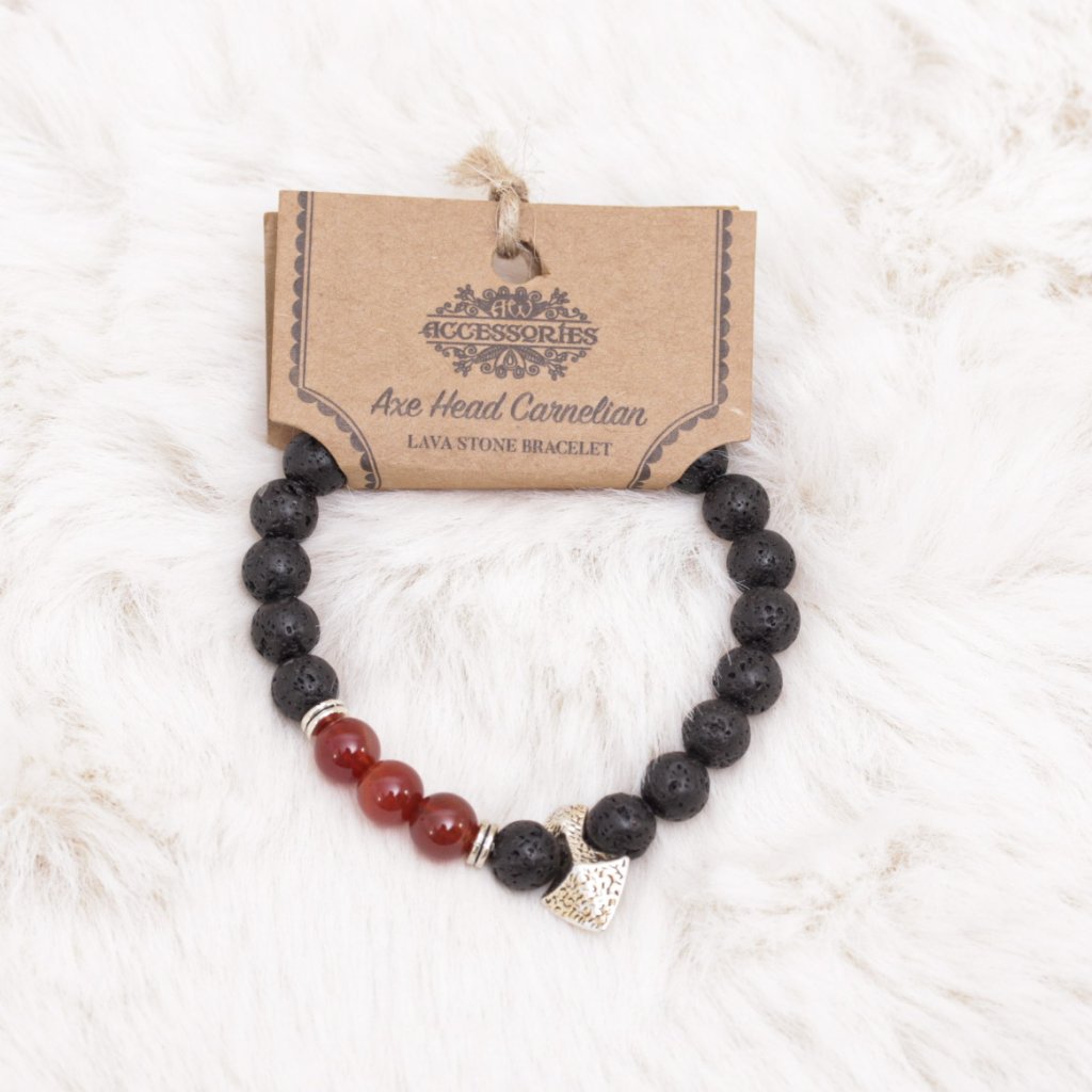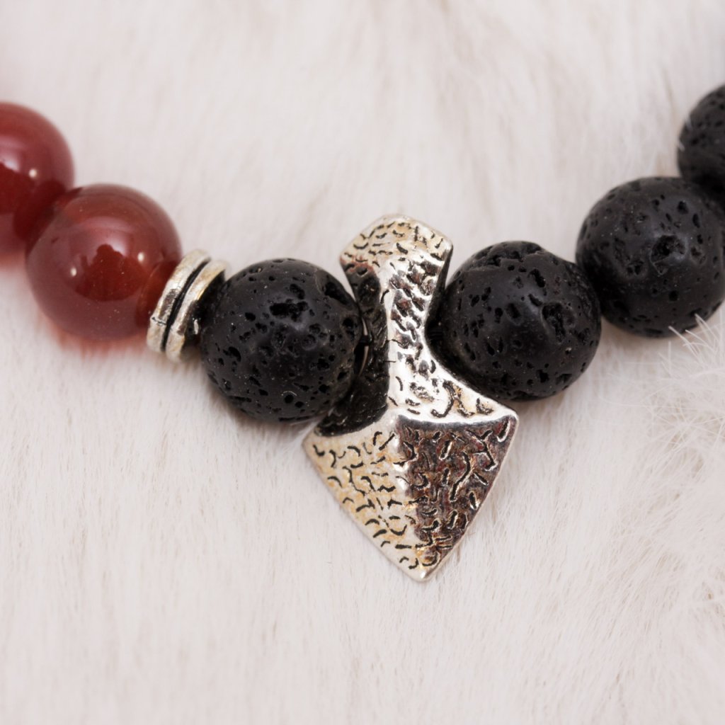 Ohnivá síla – Lávový náramek s karneolem a amuletem sekery