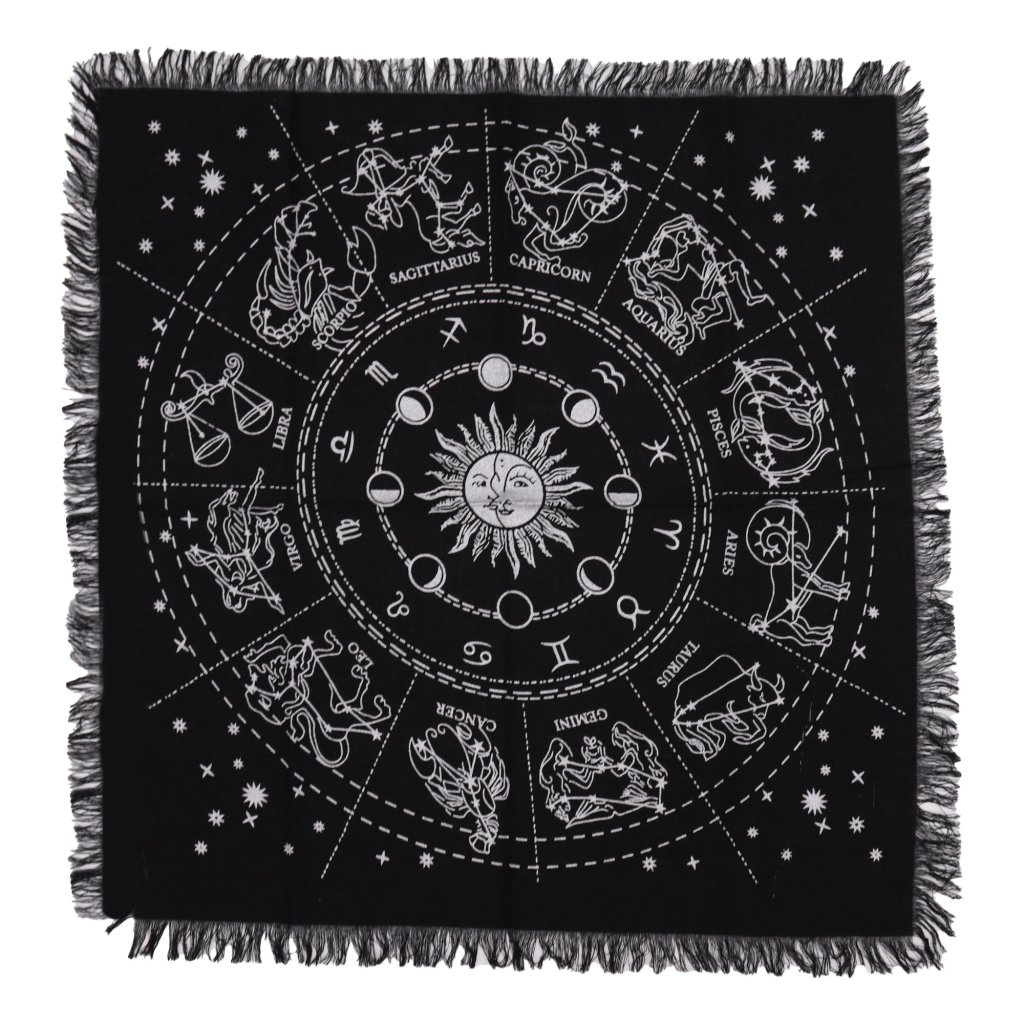 Oltářní plátno s motivem astrologického kruhu slouží jako symbolický základ tvých rituálů, meditací nebo výkladu karet. Znamení zvěrokruhu ti připomenou propojení se silami vesmíru a cyklem života. Využij jeho sílu k nastavení záměru, rozložení drahých kamenů nebo jako podložku pro tvůj duchovní oltář.