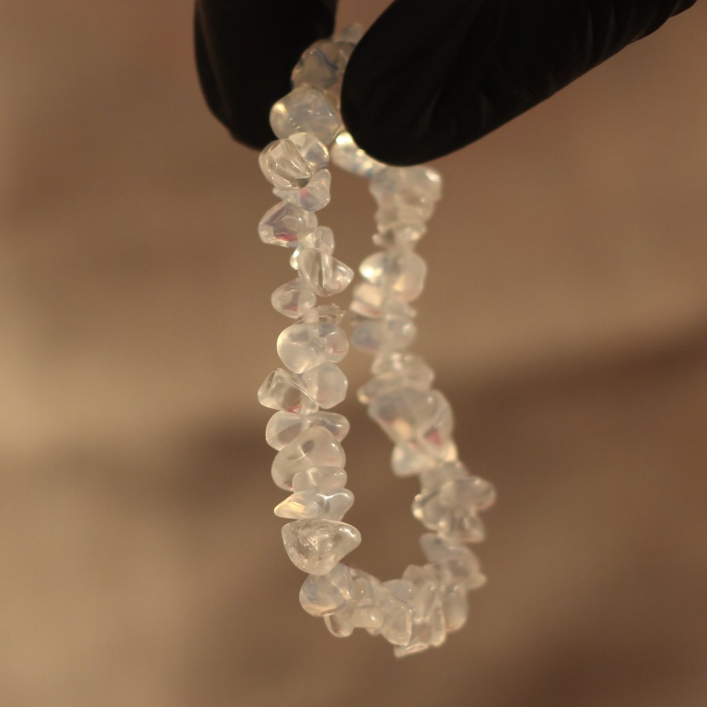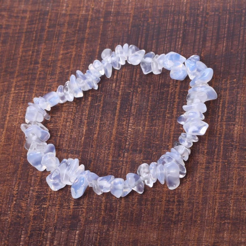 Opál (opalit) je kamenem jemnosti, vnitřního světla a emocionální rovnováhy. Tento náramek z mléčně průsvitných korálků s duhovým leskem působí jako zrcadlo ženské duše – citlivé, hluboké a zároveň silné.