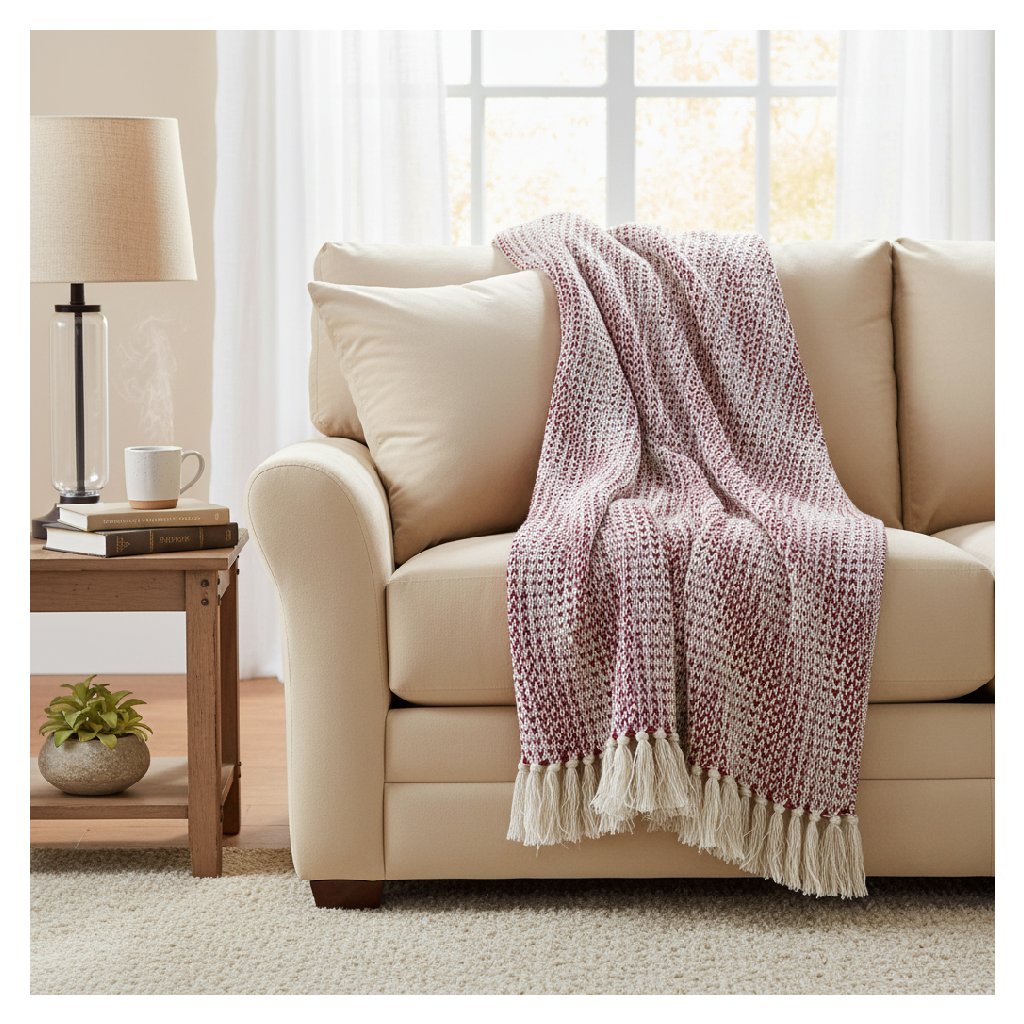 Rubínové Dvojtóny – Boho Přehoz přináší do interiéru teplou, přívětivou atmosféru a špetku výrazného stylu. Bohaté rubínové odstíny doplněné dvoubarevným designem vytvářejí harmonii, která okamžitě oživí každý prostor.