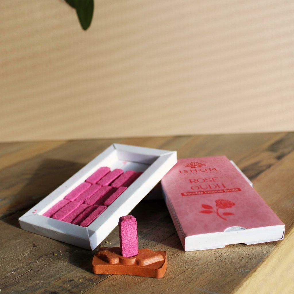 Růžové Dřevo s vůní lásky, 15 ks Vonné Cihličky se Stojanem