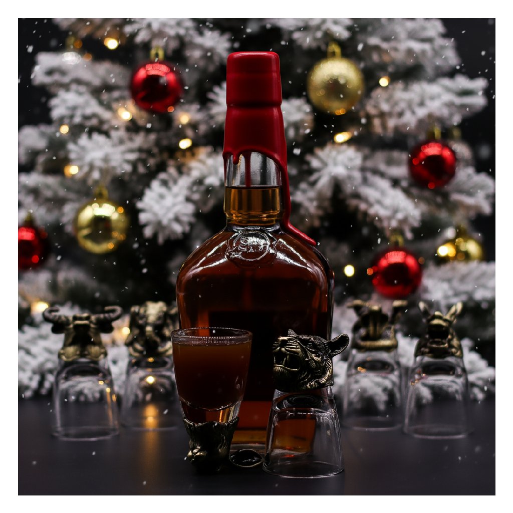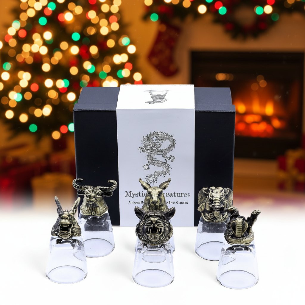 Tato výjimečná sada 6 odlivek oslavuje sílu a mystiku legend přírody. Každá sklenice o objemu 50 ml spočívá na tvarovaném mosazném podstavci, který po otočení odhaluje detailní podobu jednoho ze šesti mýtických tvorů – draka, tygra, kobry, slona, býka a zajíce. Z obyčejného pití se stává rituál, v němž se snoubí divokost, symbolika a ruční řemeslné zpracování.