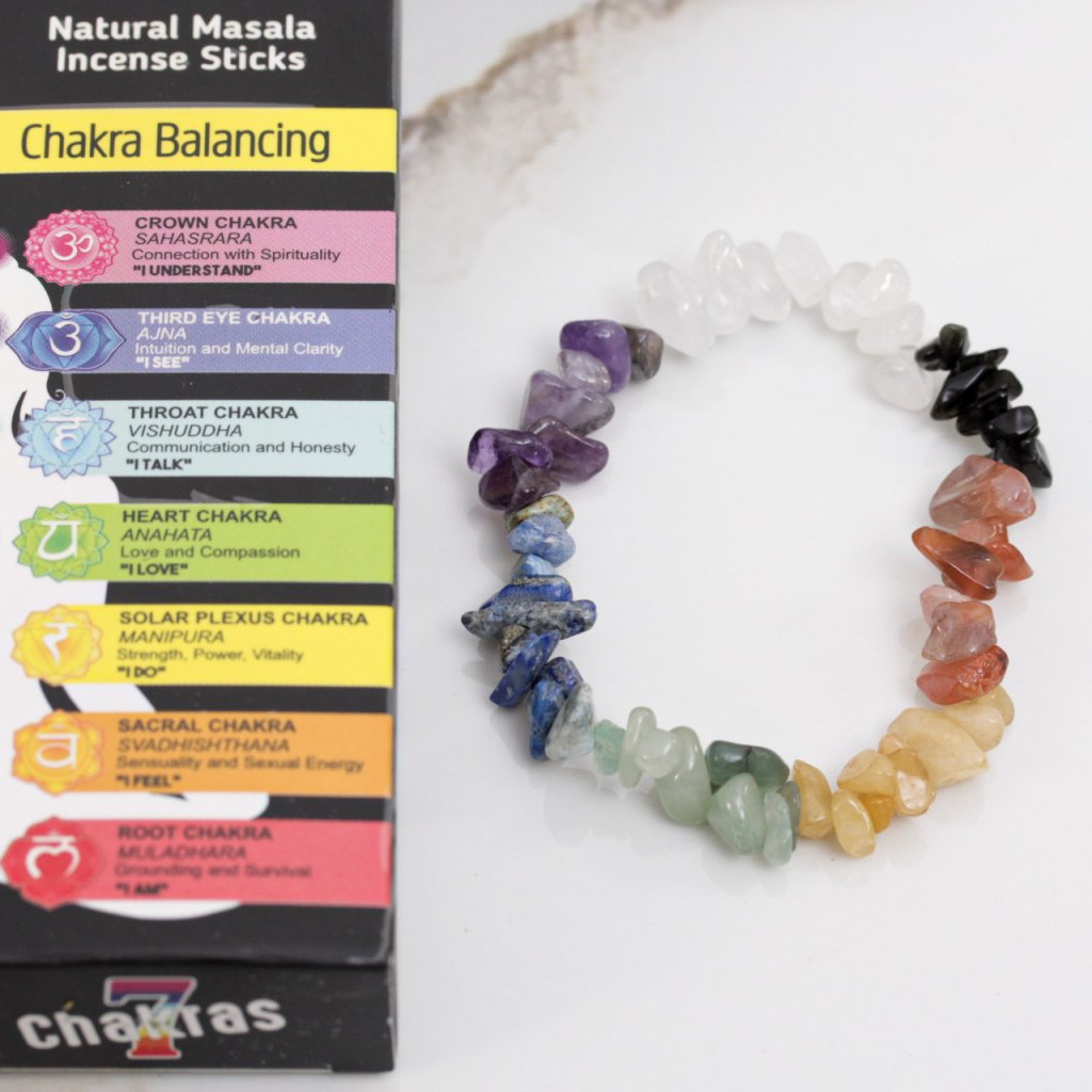 Na zápěstí si nasaďte čakrový náramek ze sedmi vzácných kamenů, který vás bude provázet po celý den a udržovat harmonii i mimo meditační chvíle. Každý kámen odpovídá jedné čakře – od kořene až po korunní centrum.
