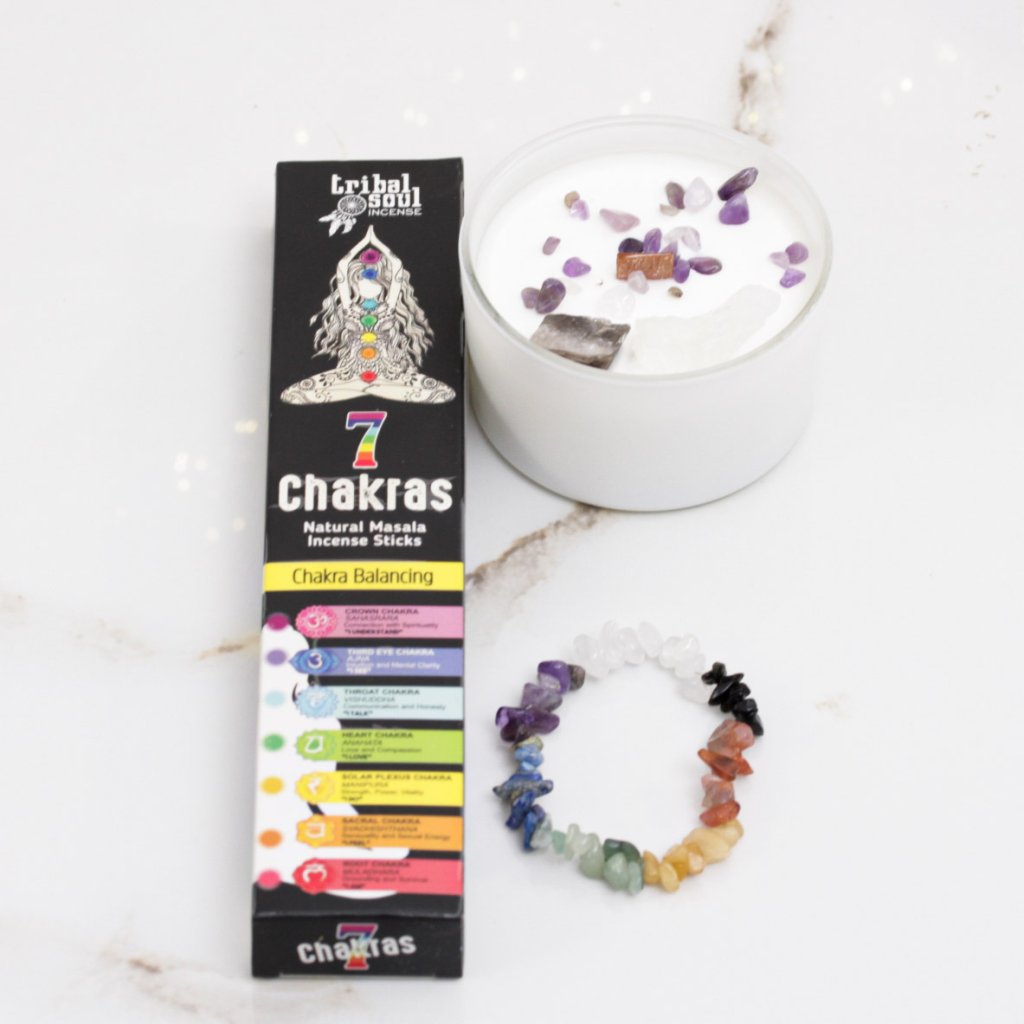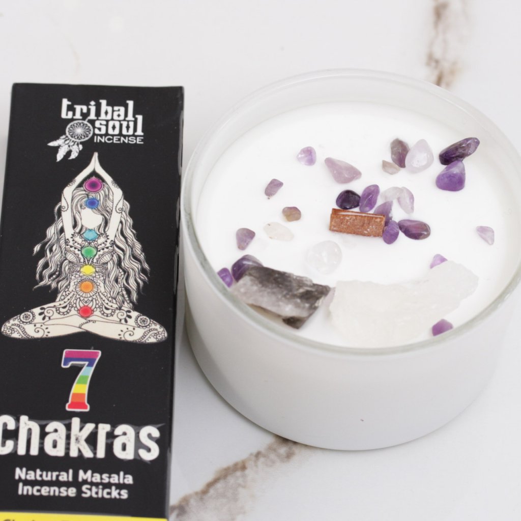 Začněte čakrovými vonnými tyčinkami, jejichž vůně postupně aktivují všech sedm energetických center. Každý tón a vůně jsou propojeny s konkrétní čakrou a napomáhají jejímu očištění a otevření.