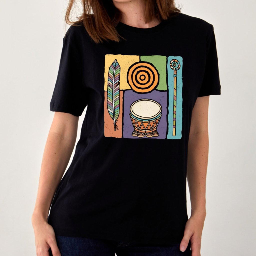 Příběh motivu: Bubny, pírka, masky, amulety – každý předmět ve výbavě šamana má svůj příběh a energii. Není to jen výzdoba, ale most k jinému vnímání, k duchům, k léčivým silám. Tento motiv zachycuje kruhovou cestu poznání, která nemá začátek ani konec – jen stále hlubší vrstvy. Připomíná, že každý krok s vědomým záměrem mění naši realitu.