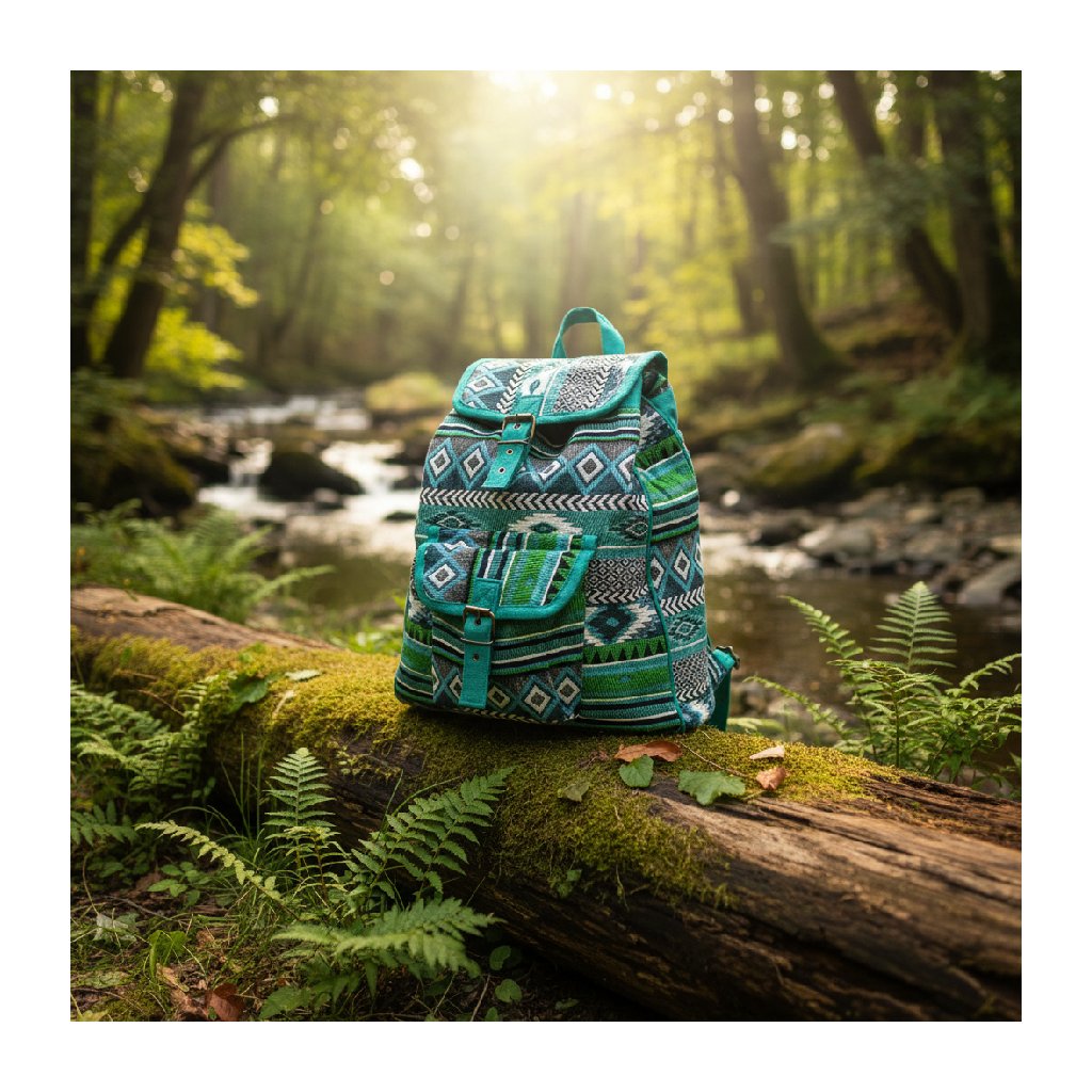 Šedozelený Sen – Etno Batoh je tradiční a zároveň moderní batoh inspirovaný nepálským designem, přímo dovezený z Indie. Tento etno batoh kombinuje praktickou velikost 28×32 cm s jedinečným ručně tkaným vzorem, což z něj činí ideální volbu pro každodenní použití i volnočasové aktivity.