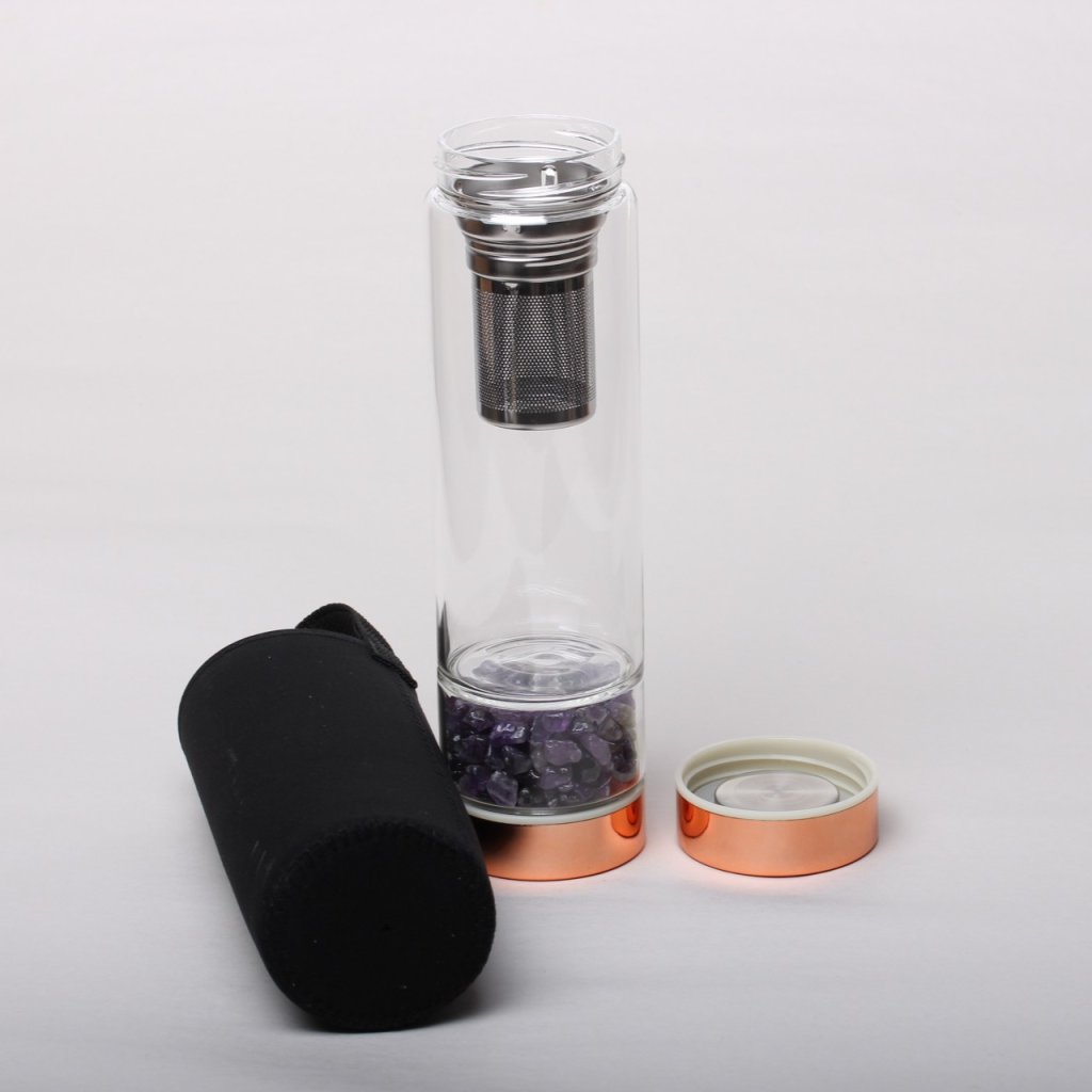 Tento elegantní doplněk vám zpříjemní rituál pití čaje a zároveň přinese do vašeho dne klid a rovnováhu. Láhev je ideální na cesty, do práce nebo jako originální dárek pro milovníky čaje a krystalů.