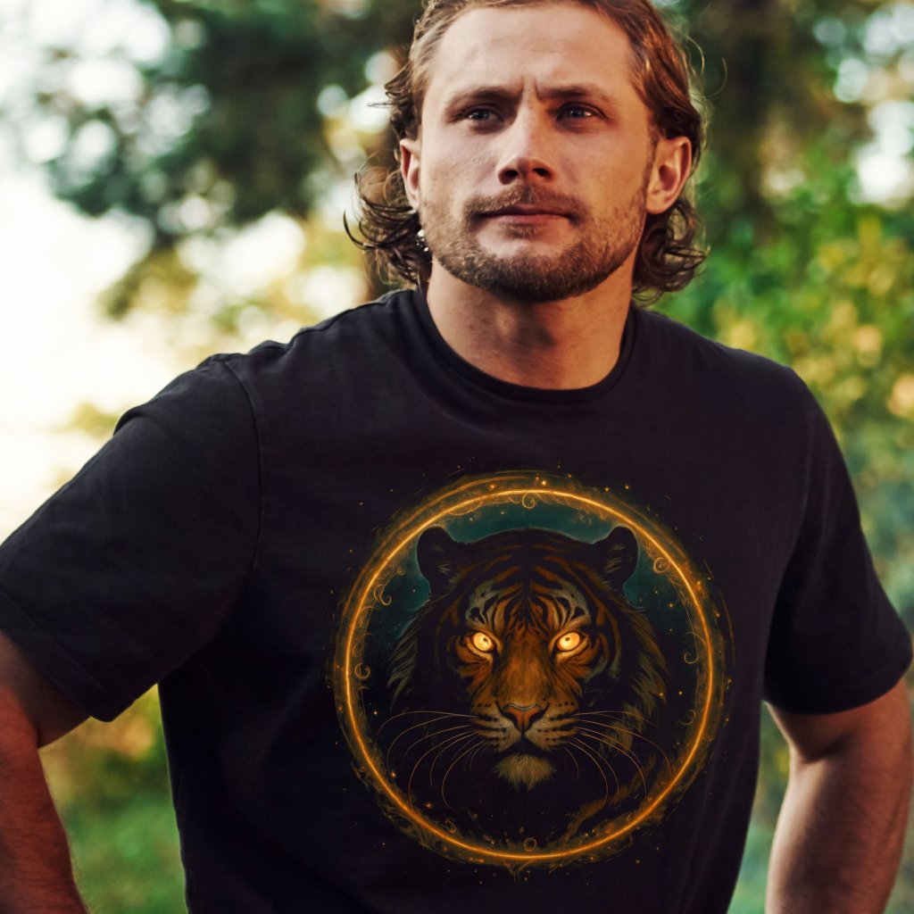 Příběh motivu: Tygr je symbolem suverénní síly a přirozené autority, která nevypíná, ale září z nitra. V asijských kulturách je uctíván jako ochránce, který dokáže s rozmyslem udeřit a vždy jednat s přesností. Tento motiv nese energii divoké elegance, bdělosti a reflexního přizpůsobení – když je třeba, udeří; jinak pozoruje v tichu a drží svůj prostor.