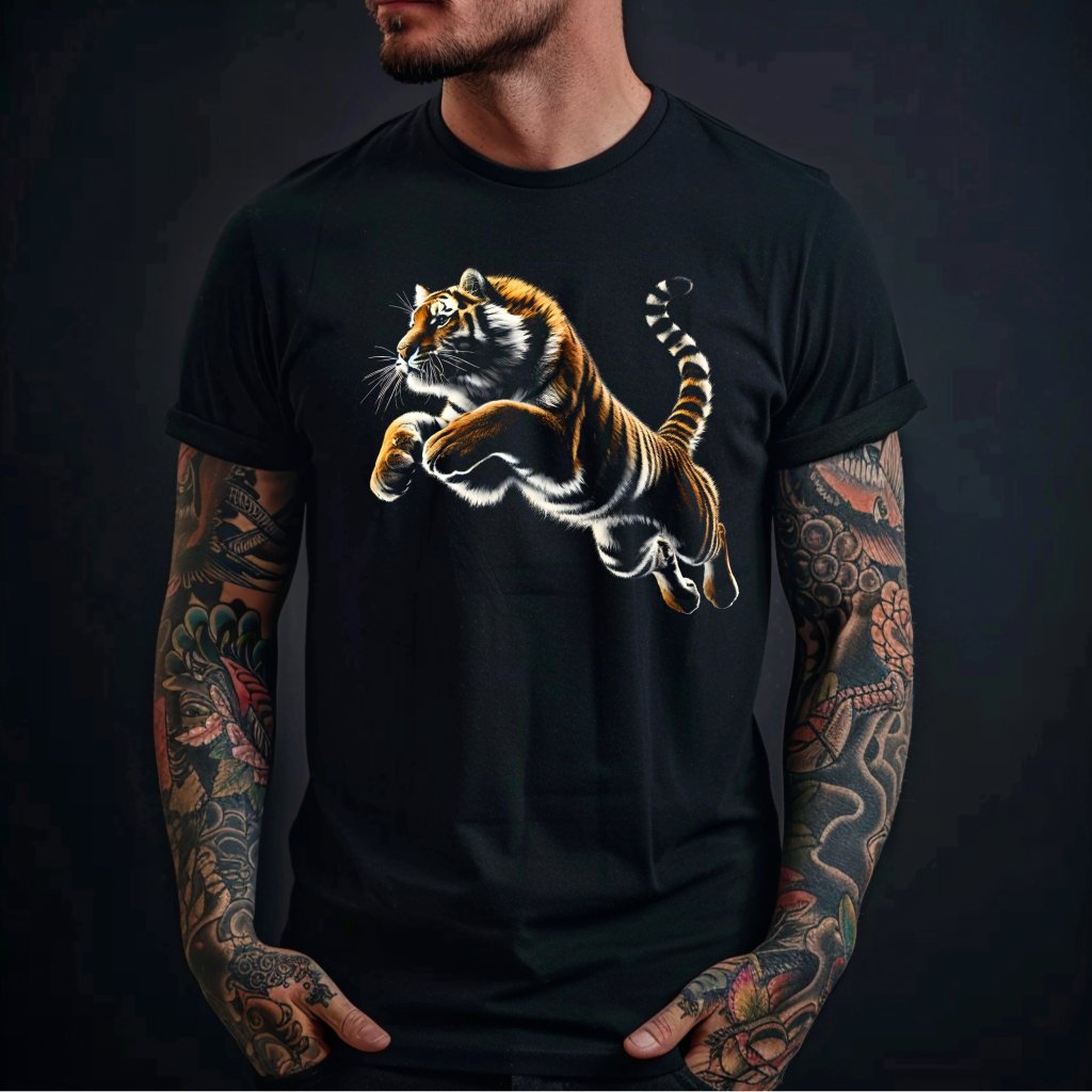 Příběh motivu: Tygr je ztělesněním divoké svobody a přirozené autority. Ve skoku se stává čistým záměrem – bez váhání, bez zpětného pohledu. Tento motiv zachycuje okamžik, kdy je veškerá síla soustředěná do jednoho cíle. Připomíná, že když cítíš správný okamžik, je třeba jednat.