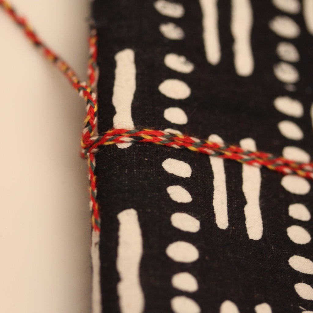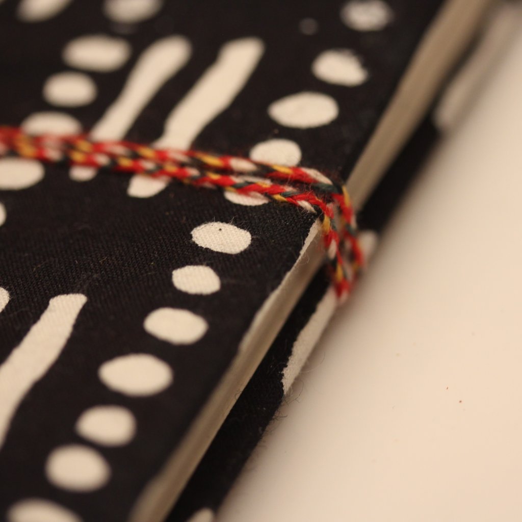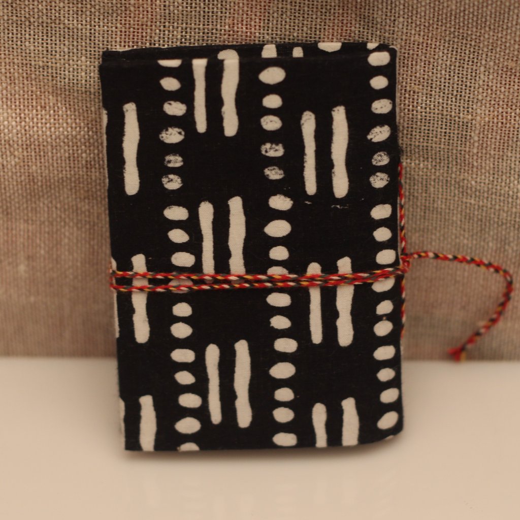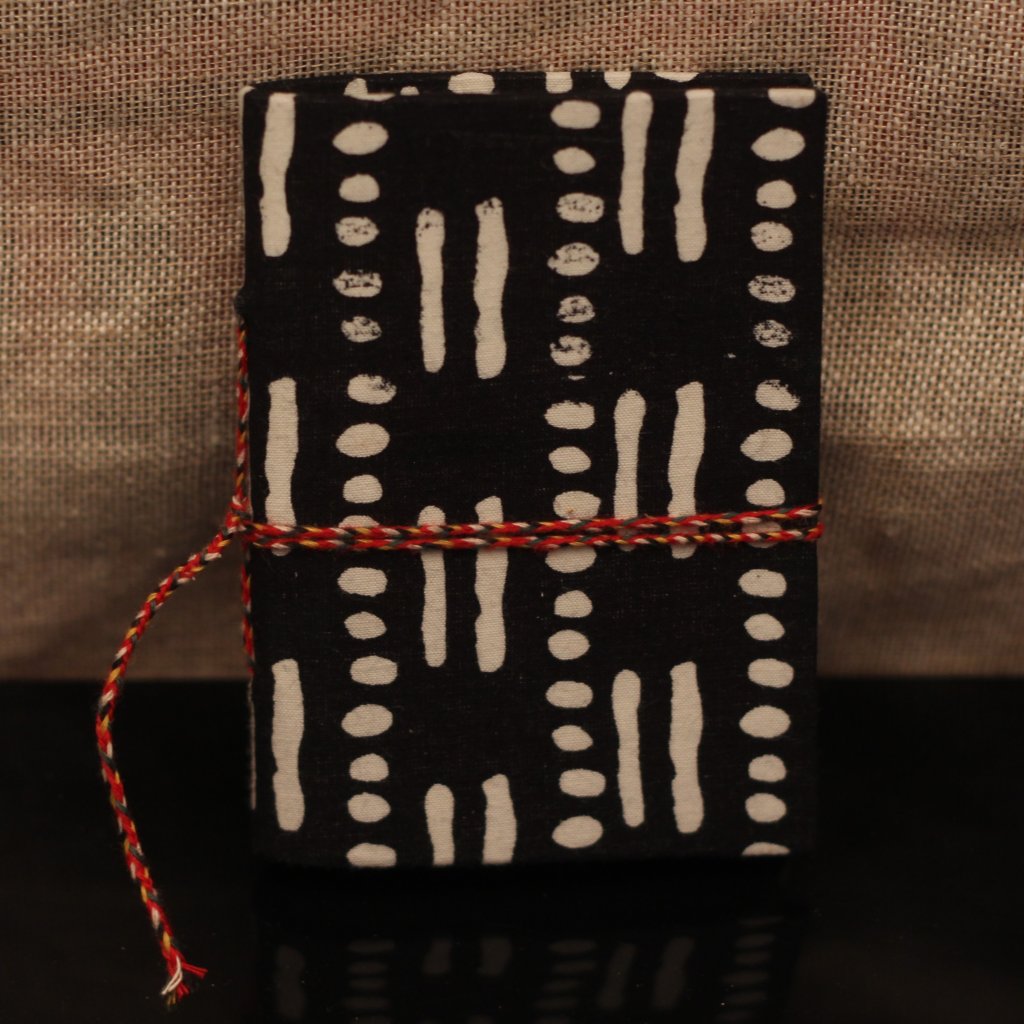 Zápisník na sny – Černý s rituálním vzorem (ruční potisk, 7×10 cm)