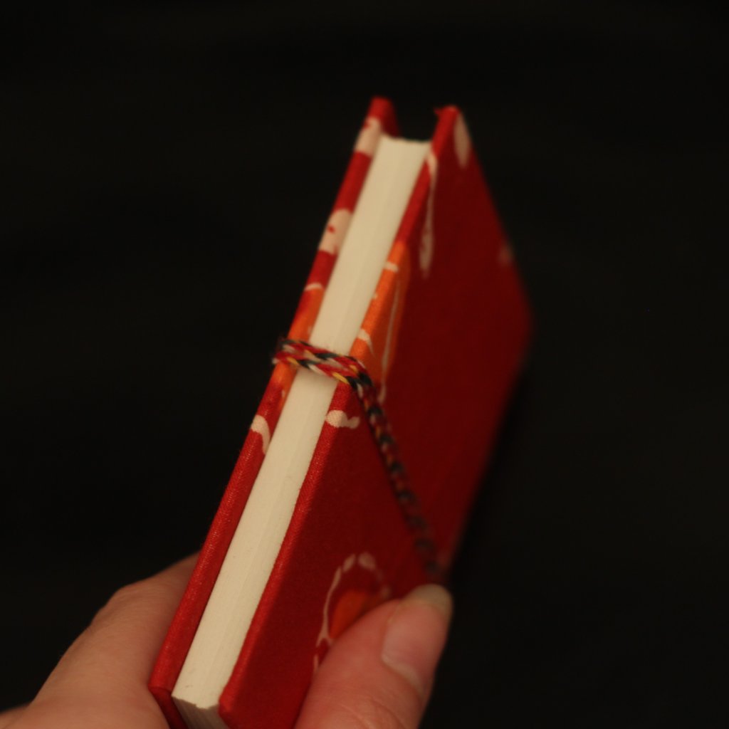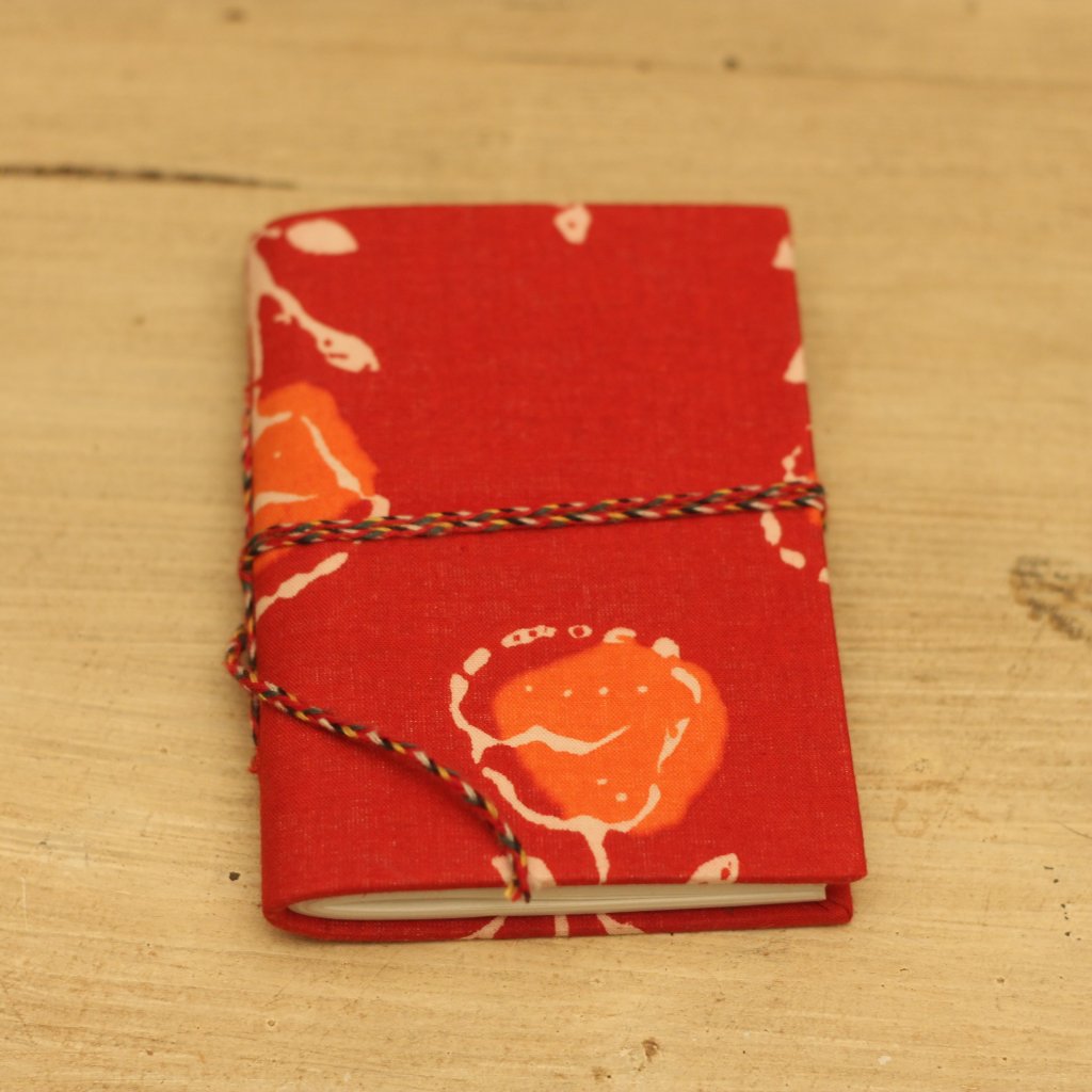Zápisník na sny – Červený s květem vášně (ruční potisk, 7×10 cm)