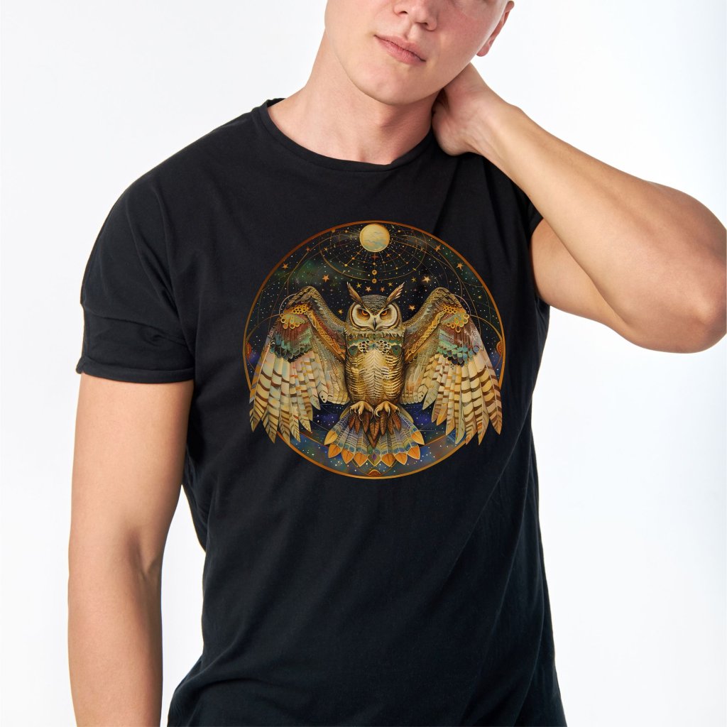 Příběh motivu: Sova je symbolem hlubokého porozumění a schopnosti vidět to, co je skryté. Zlatý odstín přidává pocit vznešenosti a posvátnosti, jako by nesla světlo poznání v temnotě. Tento motiv připomíná, že pravá moudrost přichází s trpělivostí a otevřeným srdcem.